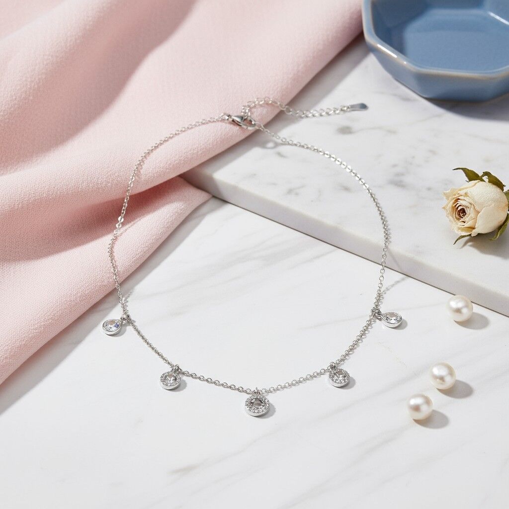 Kadın Gümüş Çelik Damla 5li Kolye 316L