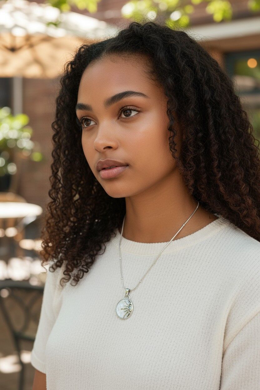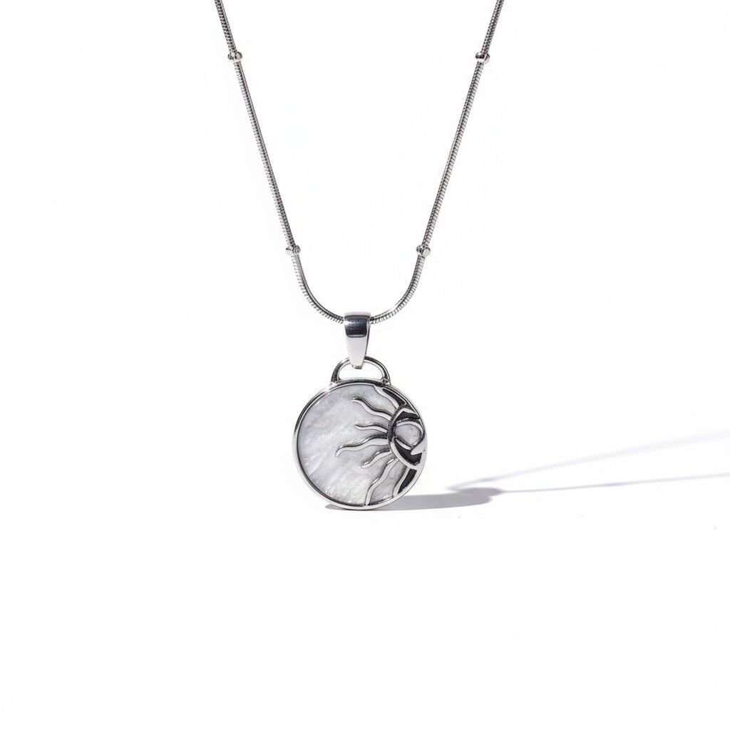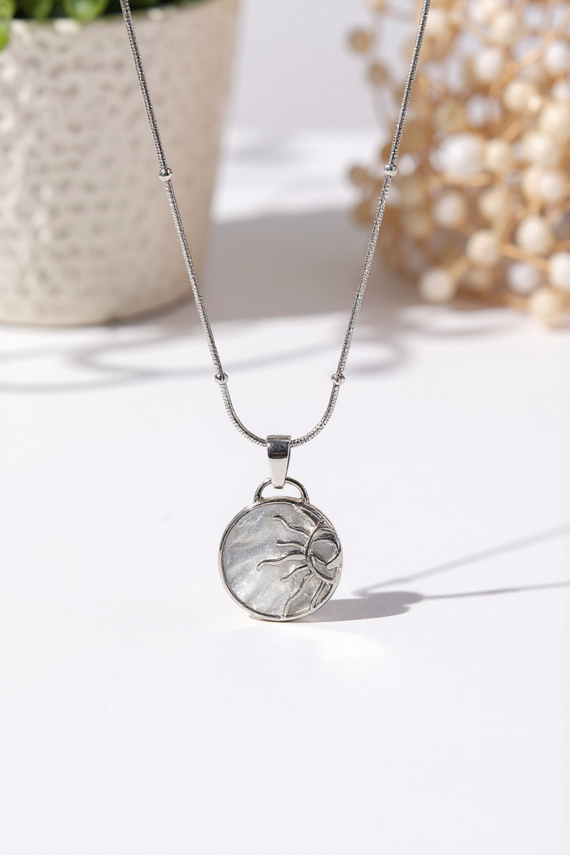 Kadın Gümüş Güneş Motifli Çelik Kolye 316L