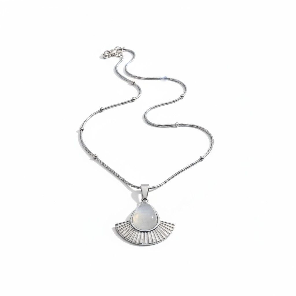 Kadın Gümüş Damla Taşlı Çelik Kolye 316L