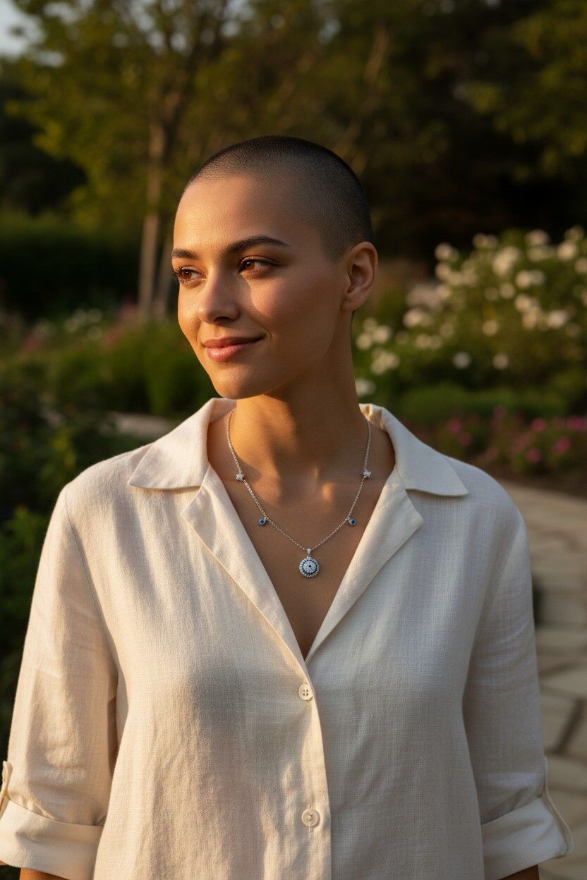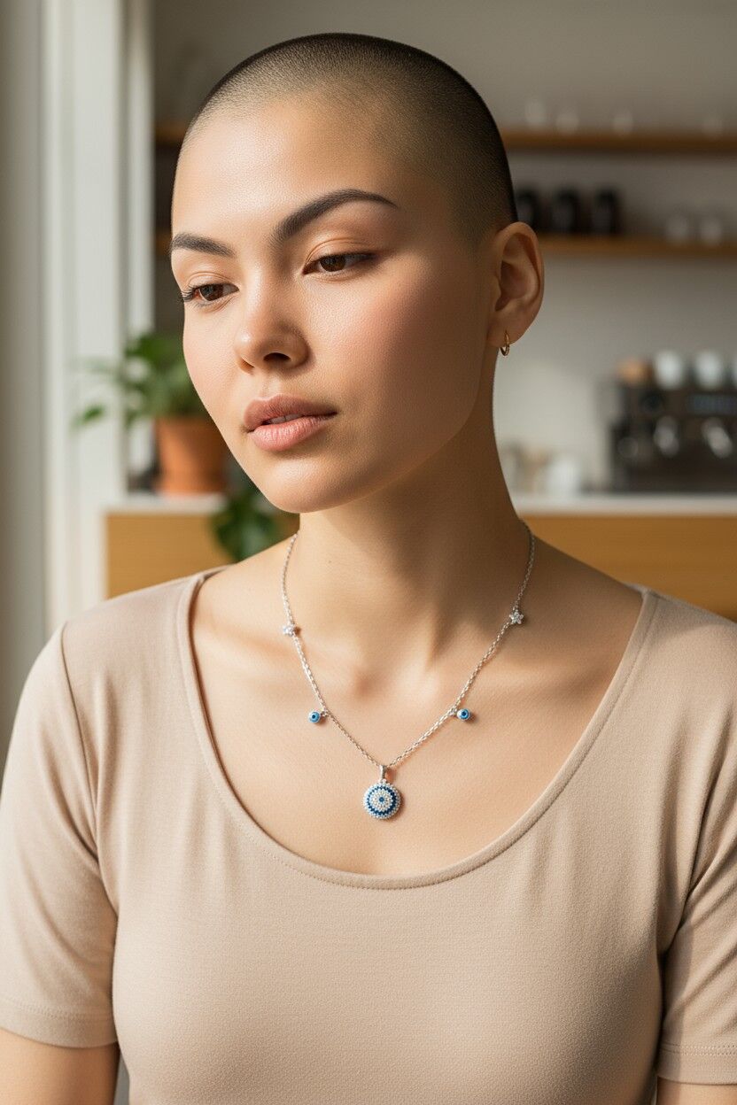Kadın Gümüş Çelik Nazar Kolye 316L