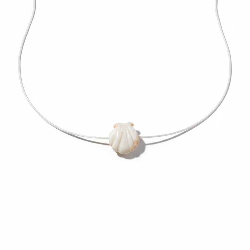El Yapımı Porselen Beyaz İstiridye Figürlü Kadın Kolye
