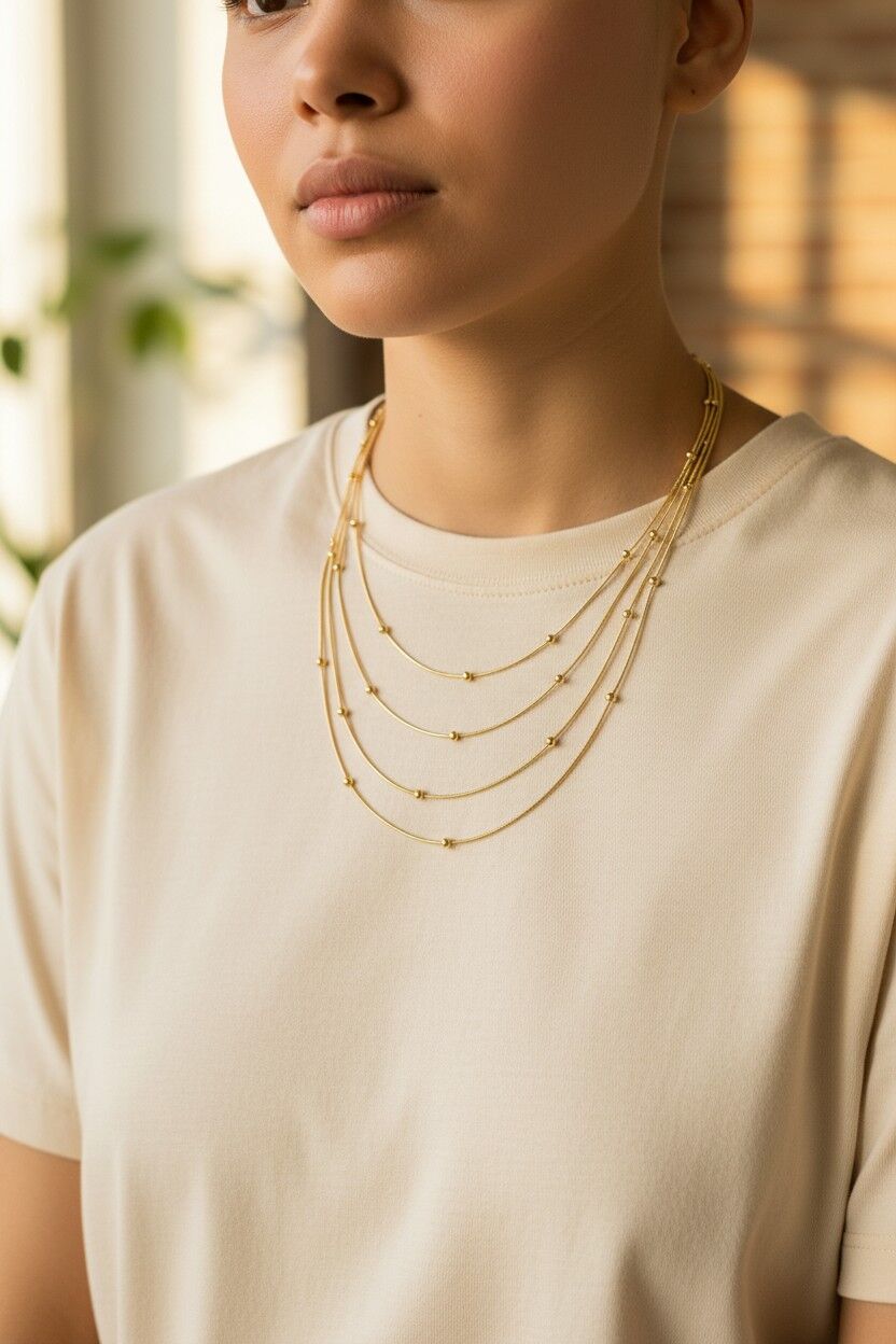 316L premium paslanmaz çelik Kadın 3’lü Dorika Altın Renkli Çelik Kolye 316L