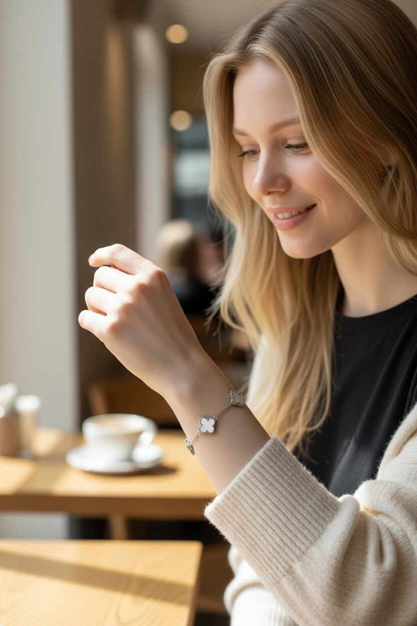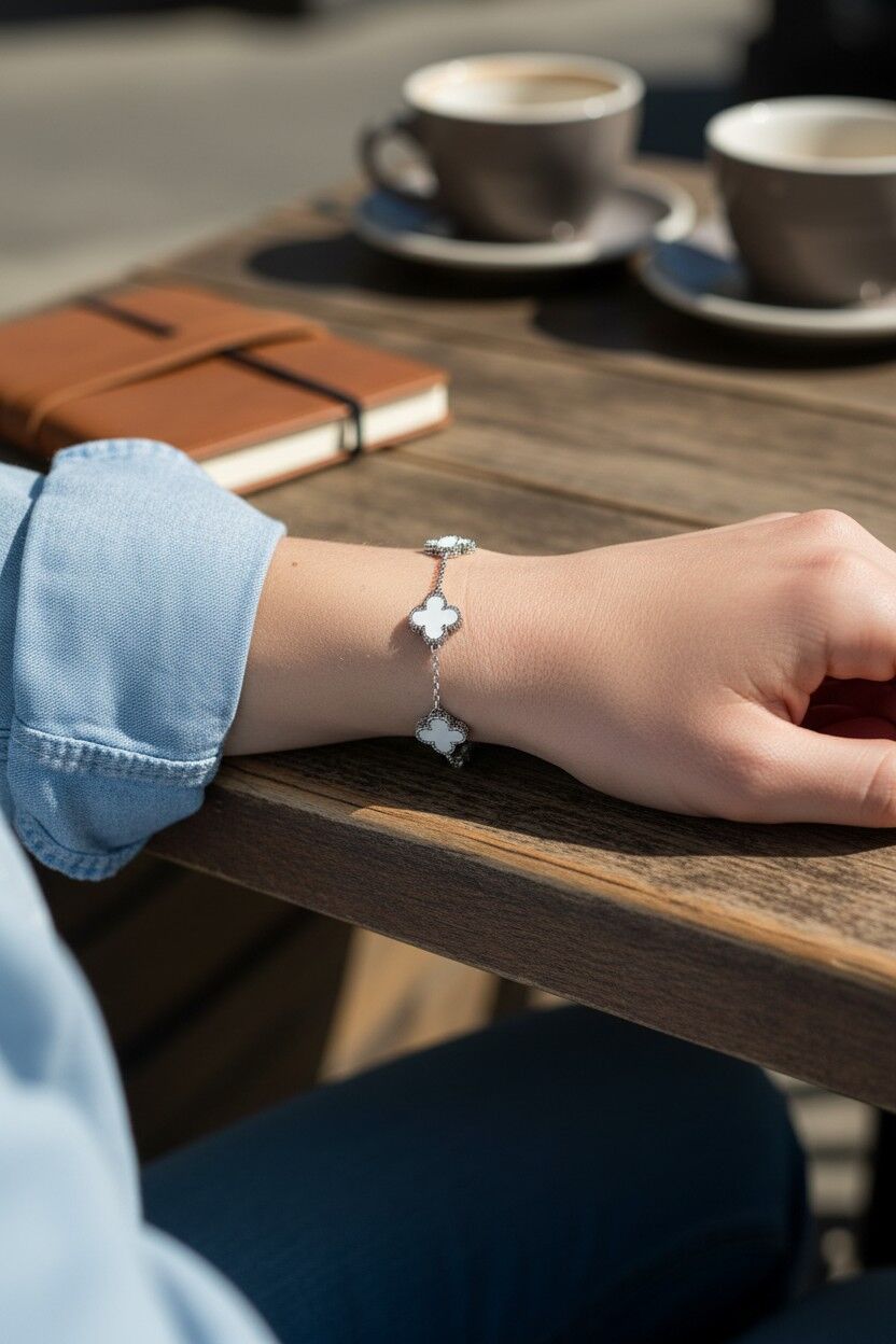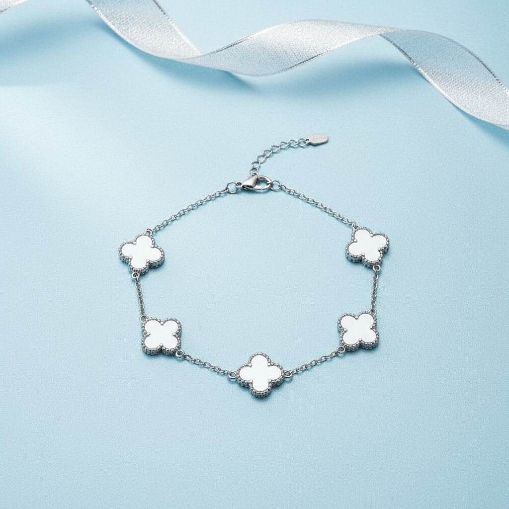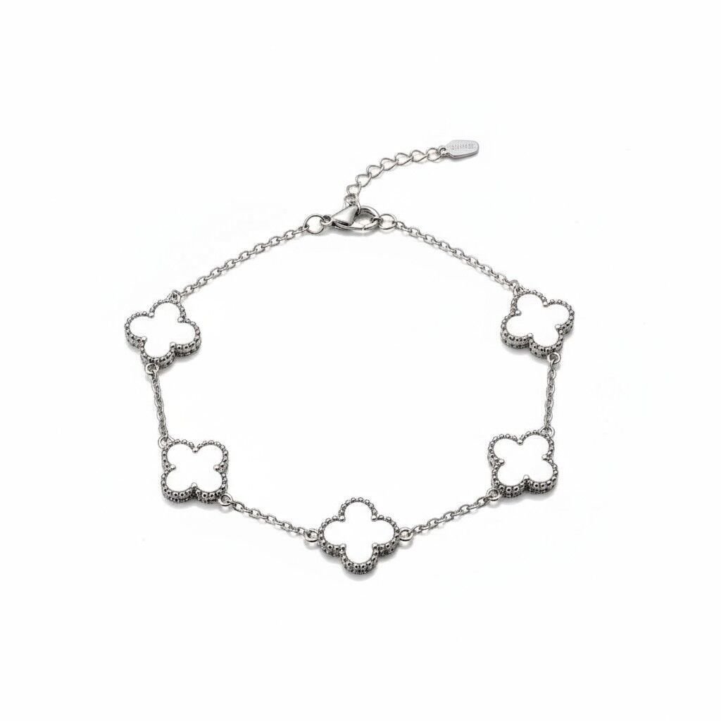 Kadın Çelik Bileklik 5li Beyaz Yonca 316L