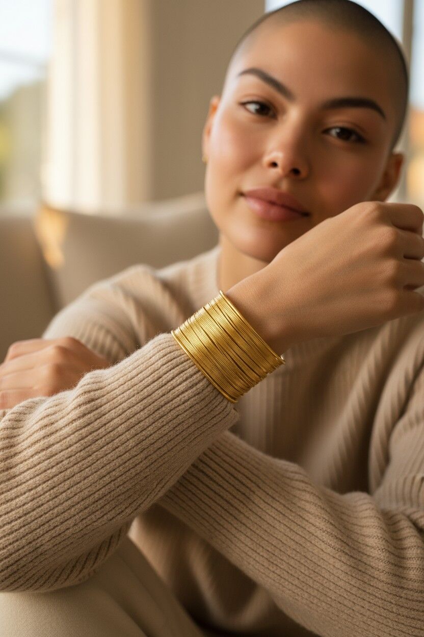 YUSSO kadın kelepçe bileklik modeli, premium 316L paslanmaz çelikten üretilmiş olup kararma ve renk atma yapmayan dayanıklı kaplamaya sahiptir. Suya ve tere dayanıklı çelik yapısı sayesinde uzun süre parlaklığını korur ve günlük kullanımda yüksek dayanıklılık sunar. Anti alerjik yapısı ile hassas ciltlerde bile güvenle kullanılabilir.
