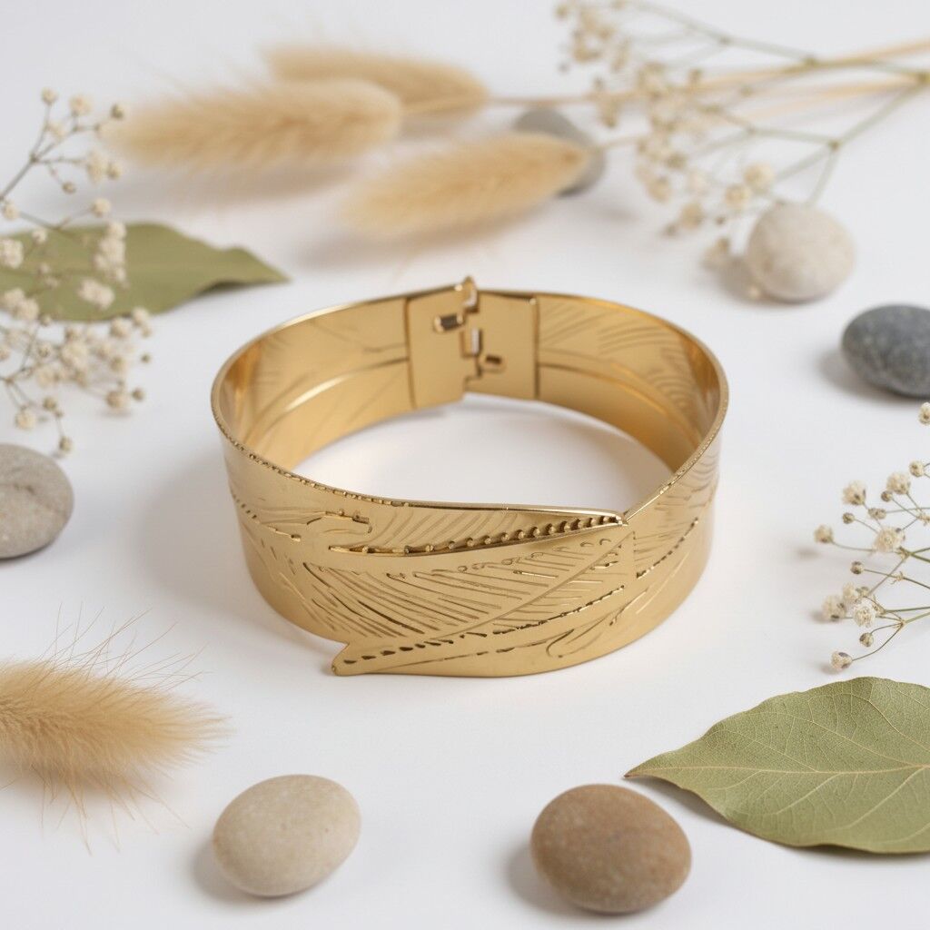 Kadın Gold Yaprak Çelik Kelepçe 316L