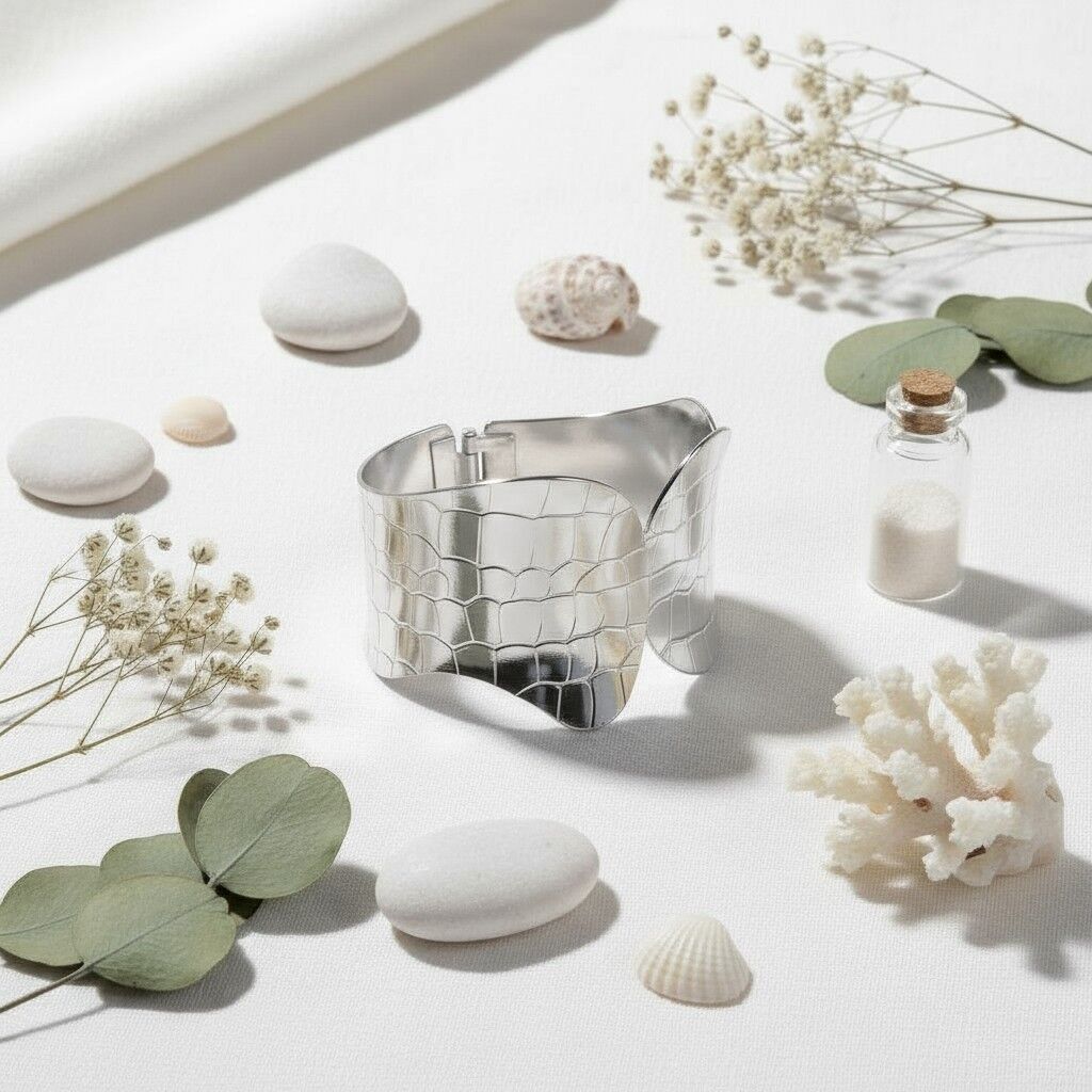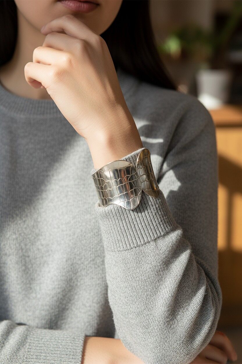 YUSSO kadın kelepçe bileklik modeli, premium 316L paslanmaz çelikten üretilmiş olup kararma ve renk atma yapmayan dayanıklı kaplamaya sahiptir. Suya ve tere dayanıklı çelik yapısı sayesinde uzun süre parlaklığını korur ve günlük kullanımda yüksek dayanıklılık sunar. Anti alerjik yapısı ile hassas ciltlerde bile güvenle kullanılabilir.