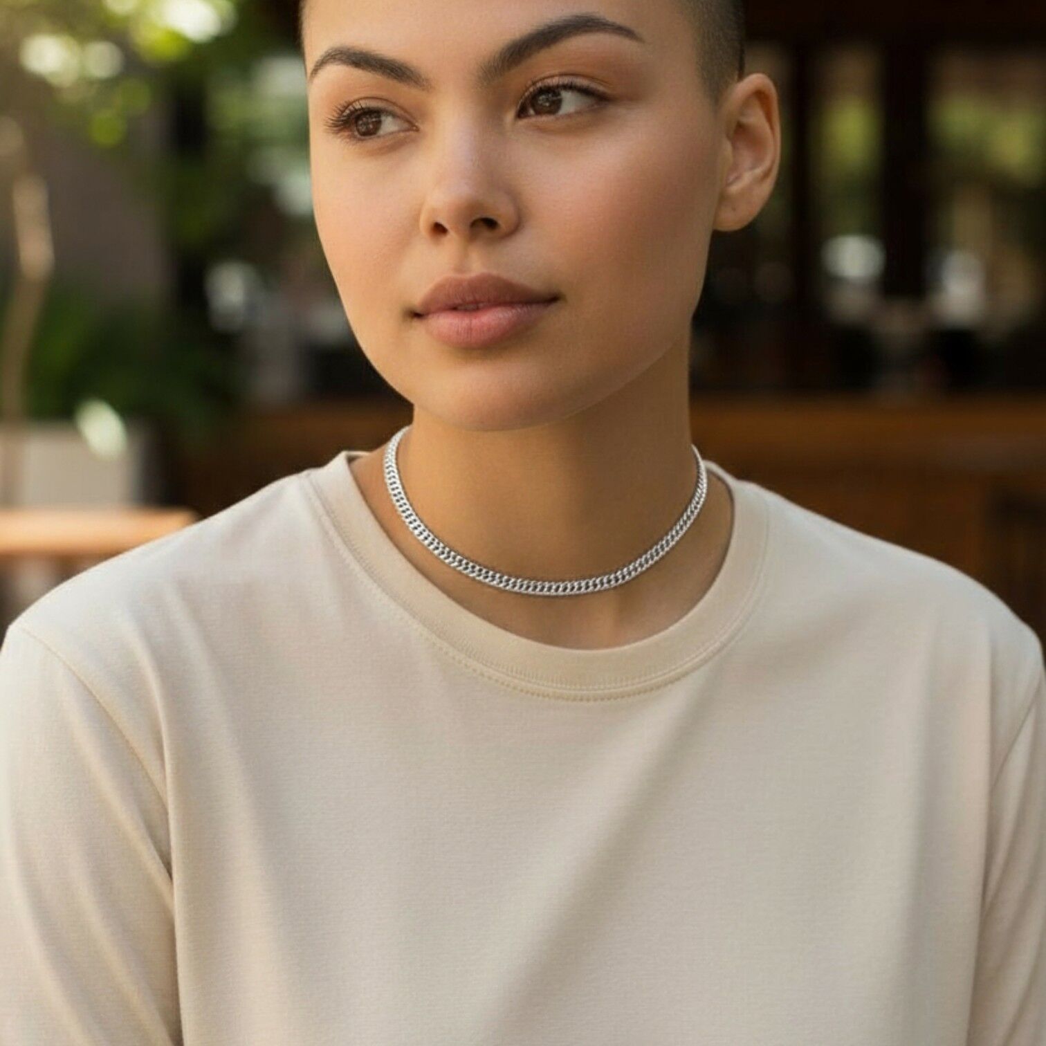 Kadın Gümüş Çelik Kolye Kısa Model 316L