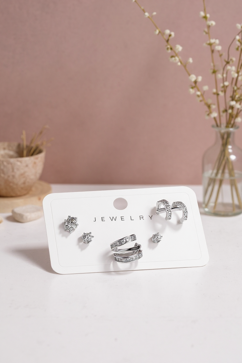 Set içindeki 6 farklı küpe modeli günlük yaşamdan özel gün kombinlerine kadar her stile uyum sağlar. Minimal, modern ve şık tasarımlar tek set içinde sunularak kullanıcıya geniş kombin özgürlüğü sağlar. Hafif yapıları kulakta ağırlık hissi oluşturmadan gün boyu konforlu kullanım sunar.